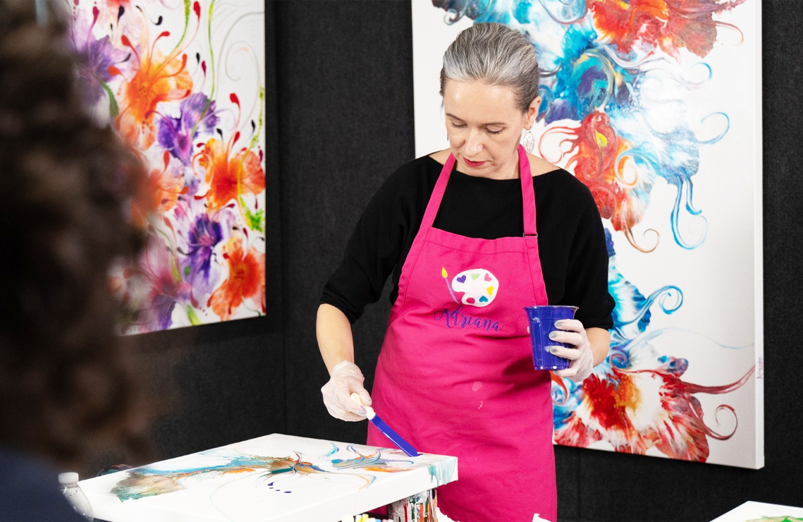 Witness the energy, movement, and intuition behind my abstract work. I’ll be painting live in the gallery every Tuesday from 12–2 PM and Wednesday from 11 AM–1 PM. Follow along on social media for weekly updates and special moments.