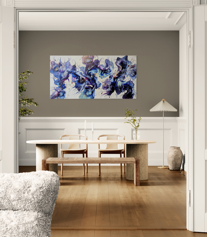A visual reflection on transformation, Embracing Change explores the balance between strength and softness, resilience and release. Bold, floral-inspired forms rise and shift across a luminous field, echoing the emotional tension of letting go and becoming. Layers of contrast suggest both depth and renewal, inviting the viewer to honor transition as a powerful, beautiful act of growth.