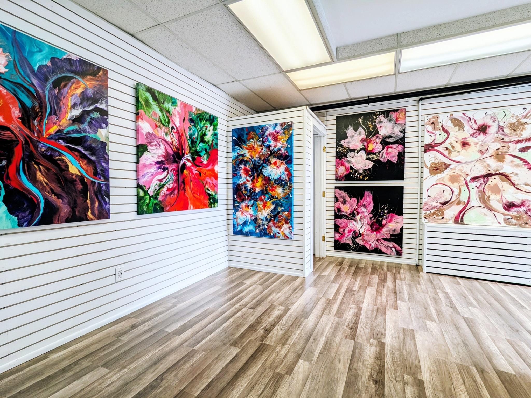 Hospitals are spaces of courage, resilience, and renewal, and I am deeply honored to have my work contribute to an environment that supports both patients and their loved ones. My Floral Fusion series, inspired by the movement and vitality of blooming gardens, is designed to uplift the spirit, spark hope, and offer moments of calm in the midst of challenge.